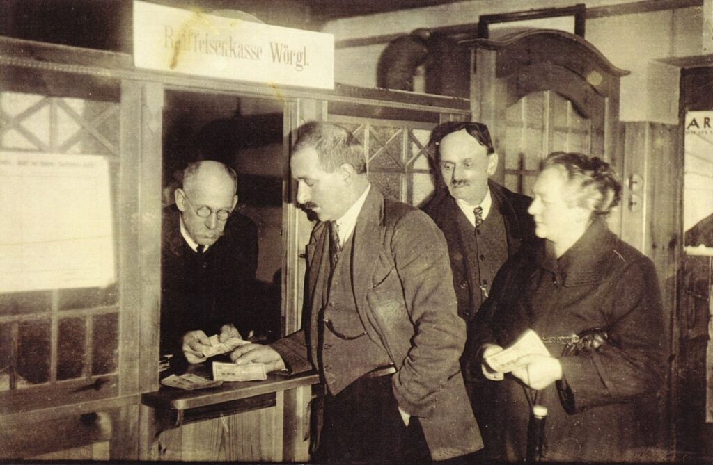 En 1932, une monnaie locale est inventée dans la petite ville du Tyrol dénommée Wörgl. À l’époque, l’économie locale subit encore largement les effets de la crise de 1929. Sur 4 200 habitants, 400 habitants étaient au chômage. Le maire (bourgmestre) Michael Untergruggenberger décide alors de créer une nouvelle monnaie, officiellement des « bons du travail ». Le maire était très inspiré par les théories de l’économiste Silvio Gesell, qui considérait que la monnaie devait être dévaluée à un taux fixe pour assurer la croissance.