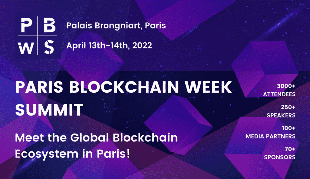 Place ensuite au Paris Blockchain Week Summit, les 13 et 14 avril ! Une aubaine pour nos lectrices et lecteurs qui peuvent bénéficier d’une réduction exclusive de 10 % sur leurs billets jusqu’au lundi 11 avril à minuit ! Pour vous représenter l’ampleur du salon, regardons les chiffres annoncés par ses organisateurs. Ainsi, c’est près de 3 000 professionnels de la blockchain, 250 intervenants, 100 sponsors et 100 médias partenaires que vous pourrez retrouver ces 13 et 14 avril 2022.